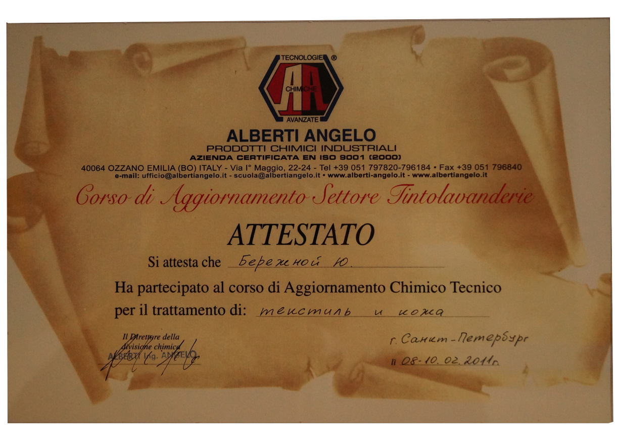 современным европейским оборудованием (SUPREMA, VIET, IPSO, PONY, Electrolux), использование химических препаратов ведущих